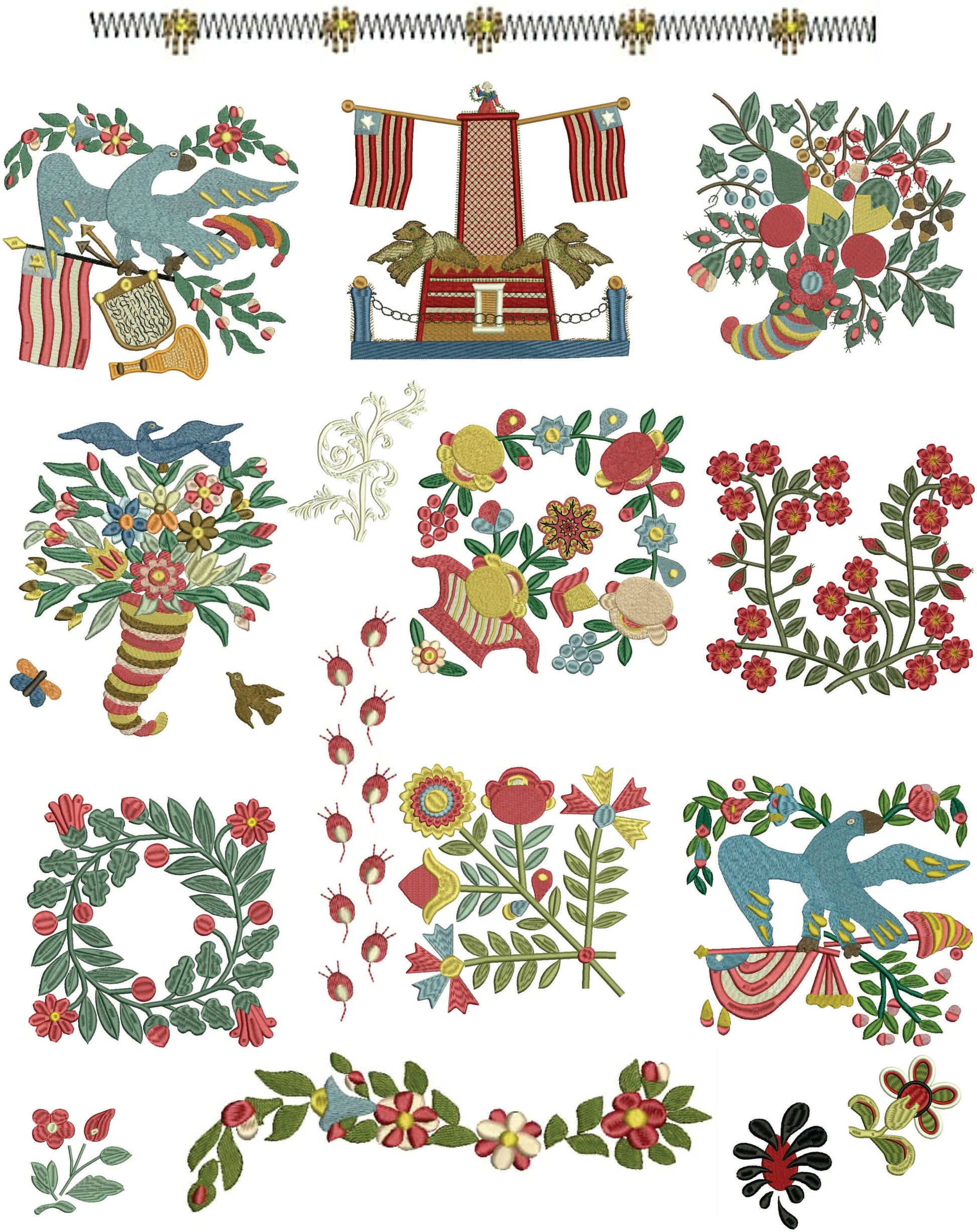 These Quilt Block Designs by Mary Koval are taken from a Vintage Hand Made Quilt from 1847. This Machine Embroidery Collection comes on a Multi Formatted Machine Embroidery Design CD which includes the Following Formats: ART, PES, HUS, JEF, VIP, VP3, SEW, XXX, EXP and DST. Each Design comes in 4", 5", 6" and 7" sizes.
